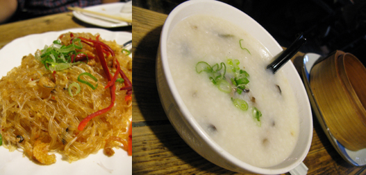 Glass Noodles with Minced Pork (L), Shredded Pork and Century Egg Porridge (Pei Tan Chuk);