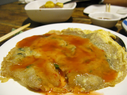 Once the formalities of stuffing our faces with Siu Long Bao were over, we moved on to the various other Taiwanese Specialities we had ordered. Oyster Omelette, a speciality originally from China’s Fujian province was a little starchy, but otherwise as you would expect – a wholesome eggy package stuffed with large, juicy oysters, vegetables and topped with a mild, sweet chilli sauce. Comfort food to the max and its no surprise its made its way from its roots in Southern China into the regional cuisines of Taiwan, Malaysia as well as other parts of South-East Asia.