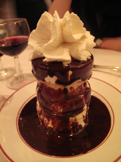 For a place that boasts absolutely no choice in the Starter and Main Course departments, the relatively long list of indulgent desserts here which range from Profiteroles to Creme Brulee may paralyze those of you who have gotten used to the convenience of having all your gastronomic decisions made on your behalf. We opted for the Vacherin du Relais after watching enviously as our neighbours ravaged the towering layers of meringue and hazelnut ice-cream earlier on in the evening. Drenched in a deliciously rich chocolate sauce and topped off with a dollop of freshly whipped cream, it tastes even better than it looks. Absolute bliss.