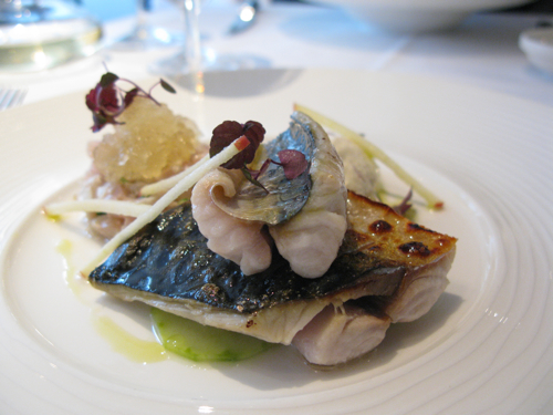 I usually don’t rave much about wine in my posts but I feel compelled to say a few words to pay tribute to the sommelier here. Not only did she go through the trouble of hearing the exact detail of the fish courses we had ordered that day, she also took the time to understand the varietal of wines we like most and what we were willing to pay without the slightest bit of pretense. She recommended a carafe of Austrian Grüner Veltliner – a wine that will be completely up your street if you are partial to crisp, minerally whites such as good Riesling or Italian Gavi di Gavi. Needless to say, it washed down the food quite sublimely. Now onto the food…