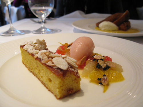 Orange and Almond Cake, Citrus Fruit Salad and Pink grapefruit sorbet (inset: Rum Baba)
