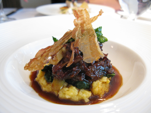Spiced Ox-tail with Creamed Polenta, Cavolo Nero and Crispy Pancetta