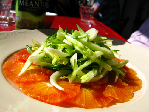 There are no signs, or printed menus here… merely a chalked up board of the day’s specials. Food is simple, hearty and seasonal. Take their Puntarelle and Blood Orange salad for instance… the juxtaposing colours alone were enough to get the salivary glands roaring. The combination of crisp chicory with segments of wonderfully sweet blood orange and citrus vinaigrette was delectable. A dish which screamed summer on a plate.