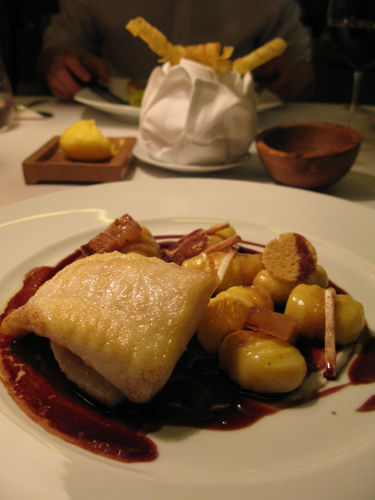 Turbot, Potato Gnocchi and Country Bacon (inset: “sacristain” potatoes)