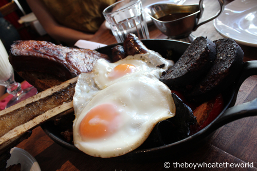 ** Regretfully, Hawksmoor Spitalfields have since done away with their weekend Brunch menu. It seems with the launch of their new bar menu in March 2012, something needed to give. Brunchers (myself included) will eternally mourn the loss of one of the London’s best. For what it’s worth, they still do a mean Burger and Pork Chop for weekend lunch… **