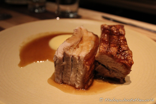 Slow-roasted Pork Belly with spiced apple sauce (£16)