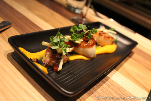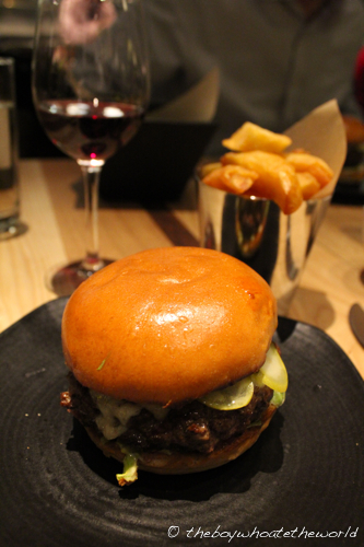 Both A and myself went for BSK’s short-rib burger. Given I had read many a mixed review about the burger leading up to the meal, I was intrigued at what would ensue. My verdict? – as far as burgers go, its definitely up there. The best I’ve ever had though? – probably not (Bar Boulud’s Piggy Burger still has my heart in that regard). I really liked BSK’s sweet, toasty warm brioche bun and oozey goodness of the melted Bermondsey frier cheese. The burger meat itself which I had asked to be cooked to a medium-rare was very juicy with a great depth of flavour. I did find the texture of the short-rib meat a little over-minced and gentrified for my liking… it could have been left coarser for a more rustic, carnivorous bite.