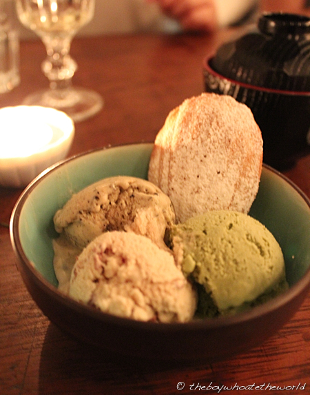 Madeleines with Black sesame, Green tea and Yam ice-cream