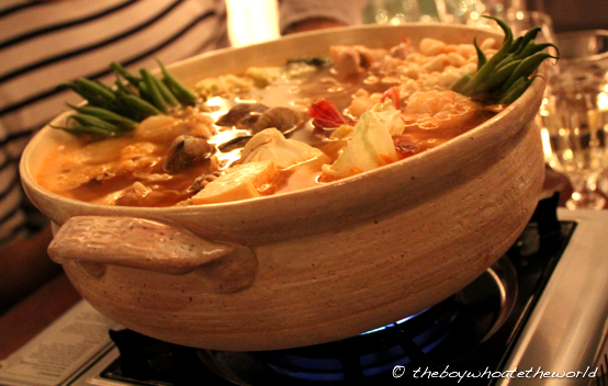 Once everyone was seated and the BYO drinks started to flow, our host briefly introduced himself and gave us an overview of what to expect for the rest of the evening. From the minute Luiz started describing the history and custom behind the first communal dish (a Nabe Hotpot brimful of pork, assorted seafood, vegetables and tofu), it was hard not to feel that same infectious passion he has for Japanese food. With the home-made dashi broth simmering away in our casserole pots, supper was well and truly underway….