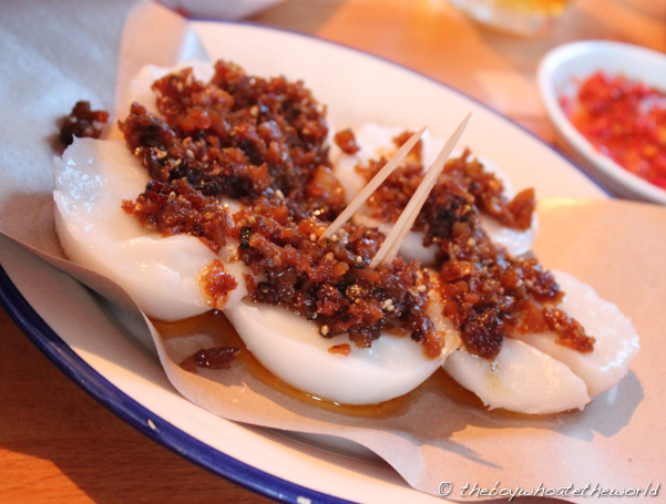 My favourite of all the starters though had to be the Chwee Kueh (steamed rice cakes). A speciality of Singapore and Johor, the last time I had these rice cakes must have been over a decade ago. The soft, velvety rice cakes were topped with delectably addictive hot salted radish (‘chai poh’) that had been spiked with chilli oil. Yum-meh mum-meh.