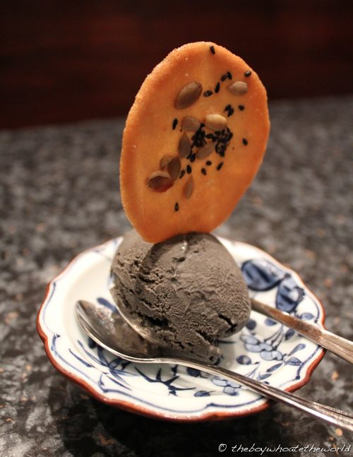 Their divine Black Sesame ice-cream, the colour the most uniform of slate-greys, brought proceedings to a happy end. The flavours were wonderfully balanced – just the right amount creaminess offset by savoury nuttiness from the black sesame. The pumpkin seed biscuit thin on top was a great touch. Sweet, crispy and light, it complemented the ice-cream beautifully. All in all, it was a fabulous end to a quite fantastic meal.