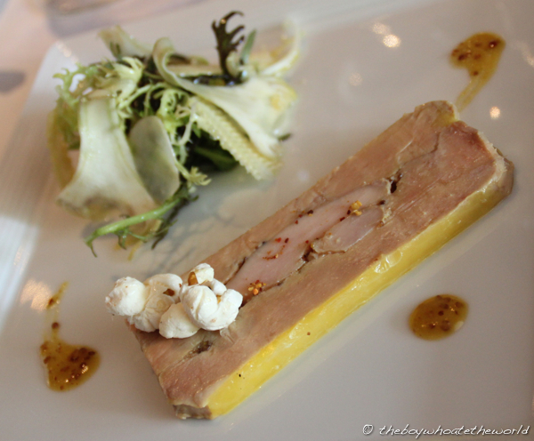 Terrine of foie gras and chicken breast served with crisp vegetable salad and brioche