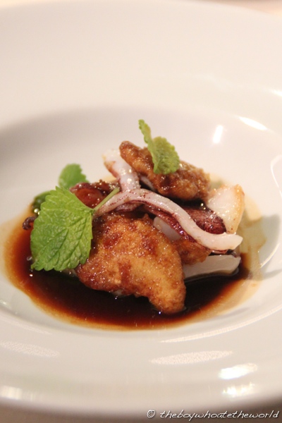 Stew of lemon rinds and grilled squid