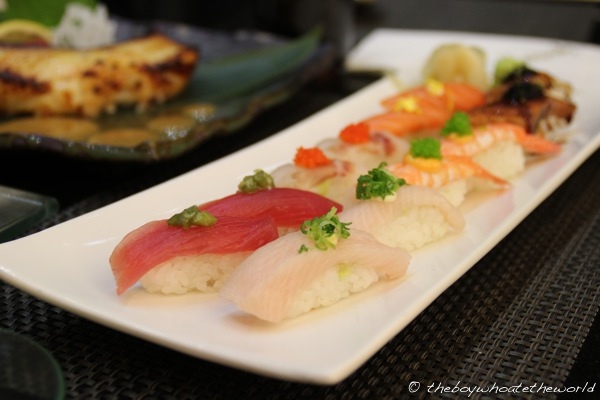 We started with a chef’s selection of nigiri and sashimi. The nigiri was expertly made – each perfectly formed and garnished intricately with individual condiments ranging from wasabi relish to generous piles of roe which lifted the classic fish, shrimp and unagi toppings. The sashimi platter, served with dry ice that was billowing away theatrically, was a bit more of a mixed bag. Some pieces were seriously good… their gorgeous melt-in-the mouth fatty tuna and juicy-sweet scallops stood out in particular. Other staples like the tuna and seabass were more ordinary and a bit too thick-cut for my liking.