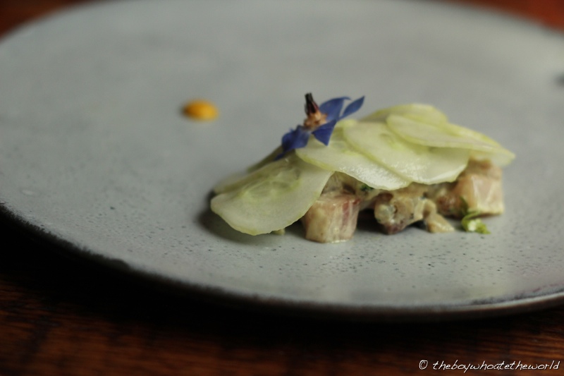 Flame grilled Mackerel Tartare with Mustard and Gooseberries