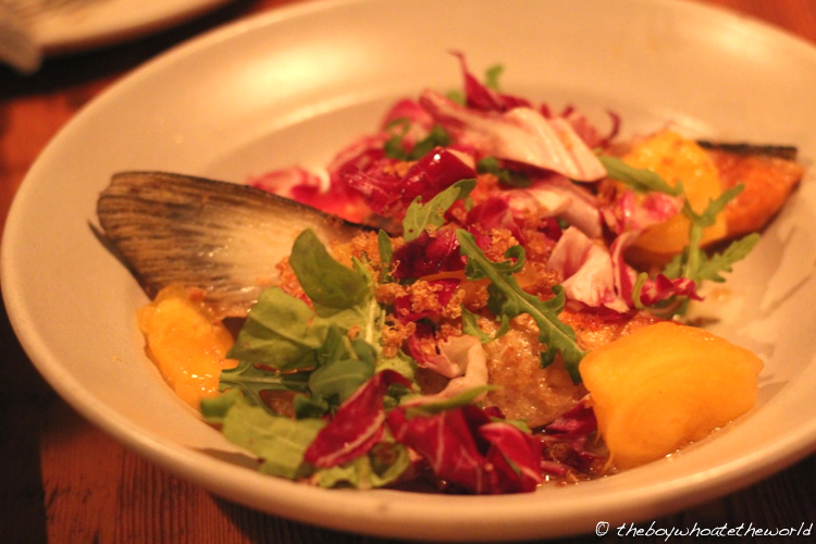 Salmon Collar, Watermelon, Radicchio & Quinoa with Chamomile Vinaigrette