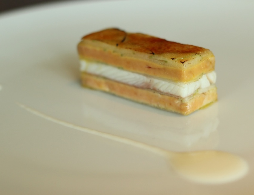 Mille-feuille of Smoked Eel, Foie Gras & Green Apple – Martin Berasategui, San Sebastian