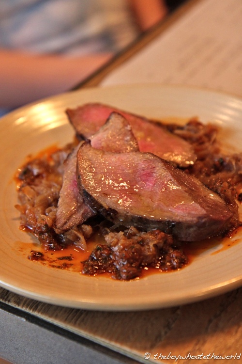 A whopper of an octopus tentacle soon followed… chargrilled till smoky and served over a bed of sobrasada (a cured pork and paprika sausage from the Balearic islands) and arrocina bean stew. The bold flavours on the whole were fantastic, however the octopus itself was a tad tough and could have done with a slower braise to preserve its tenderness.