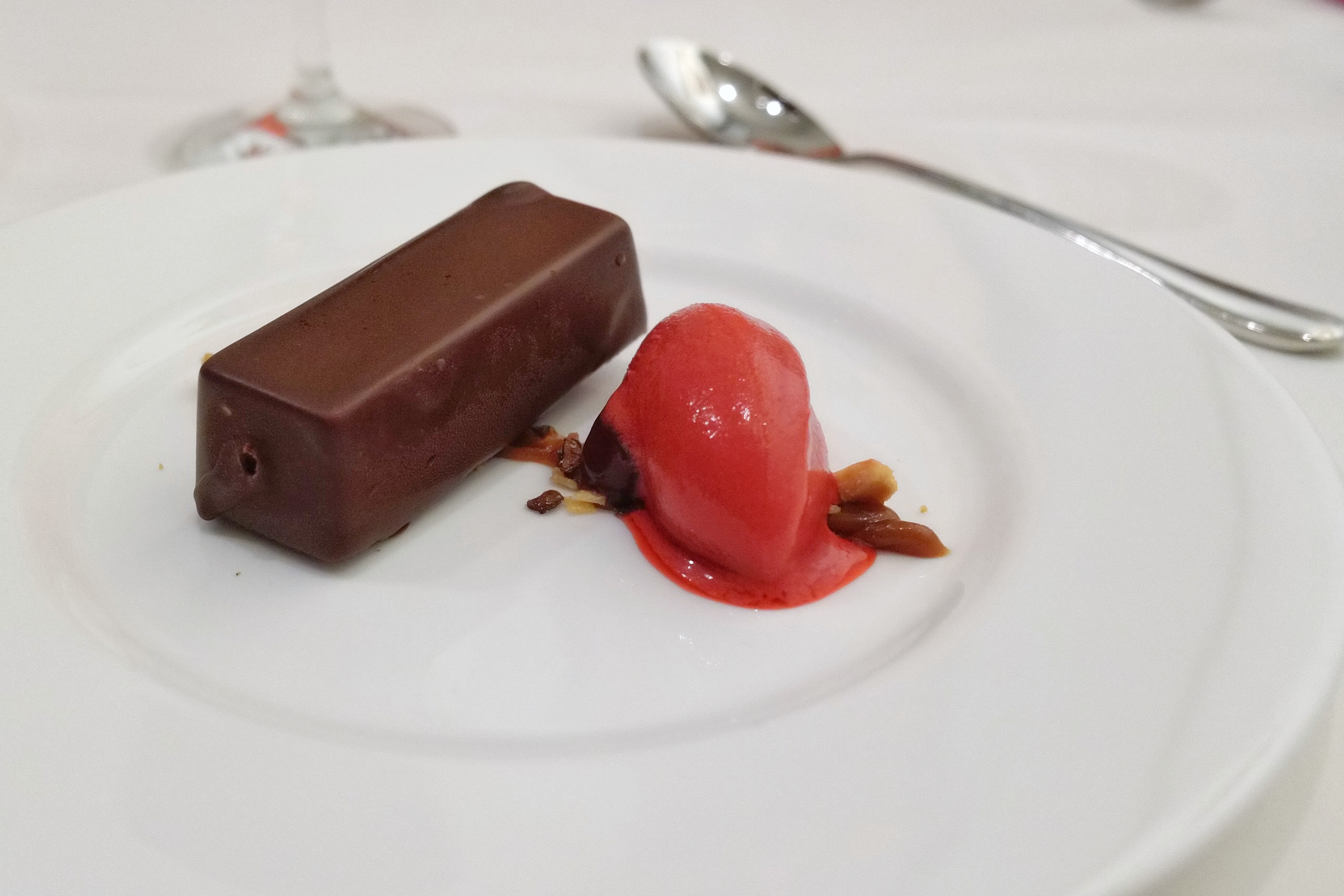 Bonhams Chocolate bar, griotte cherry sorbet & balsamic caramel