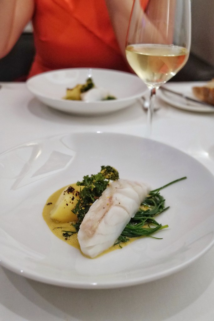 Cornish Turbot, Mussel sauce, crispy kale, monks beard & smoked potatoes
