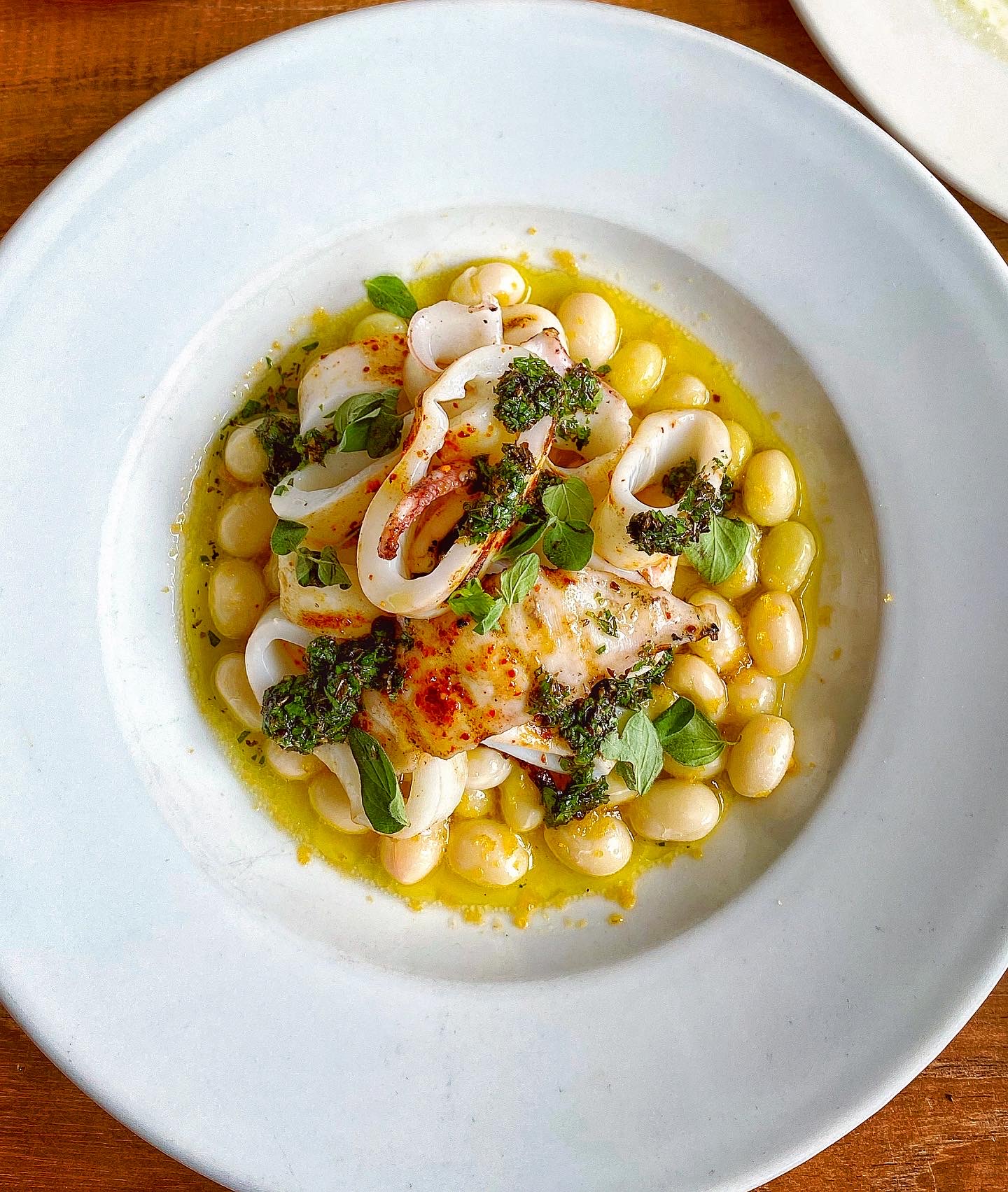 Grilled Squid, Coco Beans, Marjoram & Bottarga (@ Brawn – London)