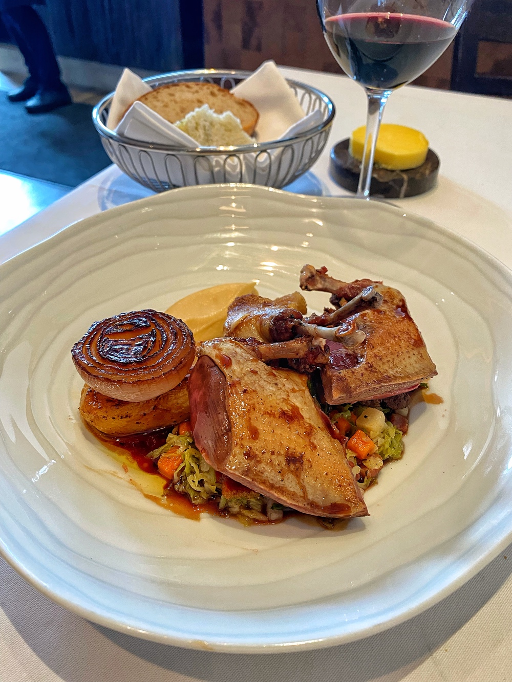 Roast Anjou Pigeon, Pate Crostini, Fondant Potato, Celeriac Puree & Braised Cabbage (@ Chez Bruce – London)
