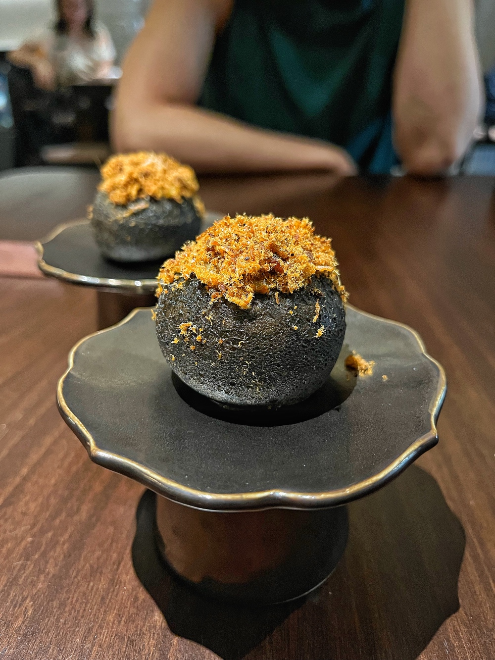Breadfruit Squid Ink Bun with Salted Kaya & Serunding – (@ Akar – Kuala Lumpur)
